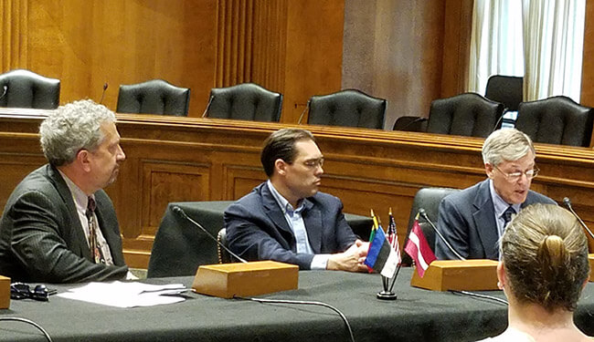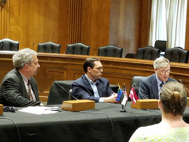 The Friday afternoon briefing took place in the Senate Foreign Relations Committee (SFRC) hearing room, where State Department Senior Advisor to the Commission on Security and Cooperation in Europe (CSCE) Scott Rauland and SFRC Legislative Director Chris Socha shared their views on Russia and security in the Baltic region. They identified several policy priorities, including full enforcement of the Magnitsky sanctions, increasing funding for the Radio Free Europe/Radio Liberty (RFE/RL) and Voice of America (VOA) missions to counter disinformation, getting to the bottom of Russia’s illegal financial operations, and making it clear to the Russian people that the U.S. is on their side and resolute in defending democratic values. They also mentioned the U.S. and its allies will be watching Russia’s major military exercise, Zapad 2017, planned for this fall along their border with Belarus. While policy is likely to evolve as more officials are assigned to vacant positions and other developments occur, they expressed confidence in continued support and funding for U.S. security cooperation with the Baltic countries. Perhaps most significantly, they gave high praise to the diaspora communities for continuing to push on these issues, stating that we wouldn’t see as much progress, knowledge or interest in Congress without these efforts. They encouraged our groups to continue dialog with leaders in the U.S. and in the European capitals to foster sympathetic voices on both sides of the Atlantic.