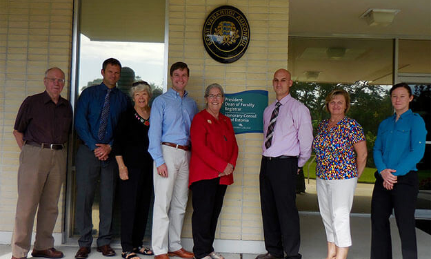 92nd Civil Affairs Battalion, Civil Affairs Team Mission Readiness Exercise at the Estonian Honorary Consulate at Eckerd College, May 10, 2016, St. Petersburg, FL. (l to r) Estonian Society of Central Florida (Kesk Florida Eesti Selts) members Jüri Toomepuu, Anneliis Kuusik, Jaan Kuuskvere, and Maare Kuuskvere and the Civil Affairs Team. Missing: Tõnu Toomepuu and Erkki Taada. Foto: Estonian Honorary Consul Lisa A. Mets