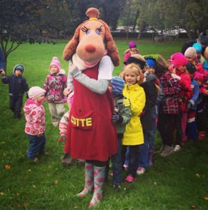 Fotol paremal: Lastel aitab sobilikud tammetõrud üles leida alati rõõmsameelne Lotte. Foto: facebook-Eesti 100 tamme