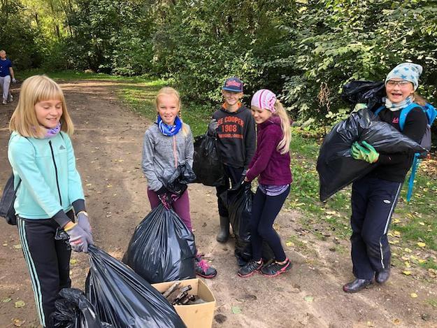 Tartumaa Skautide ja Gaidide Maleva Fööniksite skaudisalga liikmed andsid oma panuse ülemaailmsel koristuspäeval, puhastades metsaalust Tartu Lodjakoja lähistel. Vasakult: Kärt Haamer, Hanna Jõgi, Remi Jõemaa, Katriin Rosenberg ja Eva Marit Salum. Järgmisel päeval “premeeriti” neid maleva hooaja alguse pannkoogipäevaga Tartu Skaudikeskuse õuel. Foto: Siimon Haamer