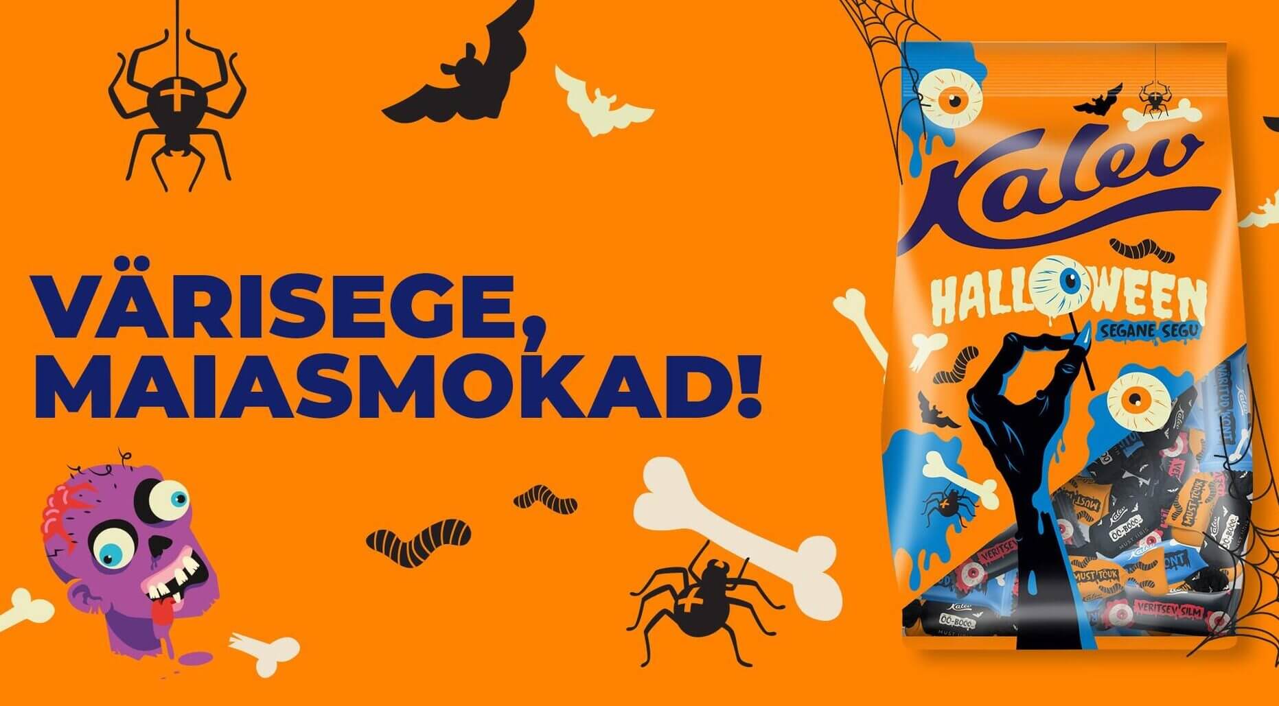 Teil on seal palju halloweenikomme (kompvekke, kompusid), mis on tavalisest väiksemates pakkides, aga meie halloweenikommid, mida teeb vaid üks kommi/vabrik – Kalev, on müügil ainult enne halloweeni ja on hirmsate nimedega ja piltidega. Kalev (Orkla Eesti AS) on hakanud viimastel aastatel tootma (to produce) ka erilises pakendis ja ainult novembris müügil/olevaid mardi- ja kadri/päeva komme. Sest neid päevi unustada oleks tõeliselt hirmus, mis siis, et kontidega ei kolistata ja hirmust ei tule piss püksi. Santimas käisid sinu vana-vana-vana/ema ja väga vana vana-vana-vana-vana/isa. Kui paljud inimesed Eestis just neid erilisi (special) komme nendel õhtutel jagavad, seda ei tea. Aga neid ostetakse ja süüakse. Peab ju proovima, juba mitmel aastal on olnud erinevad nimed ja pakid, mis meelitavad.