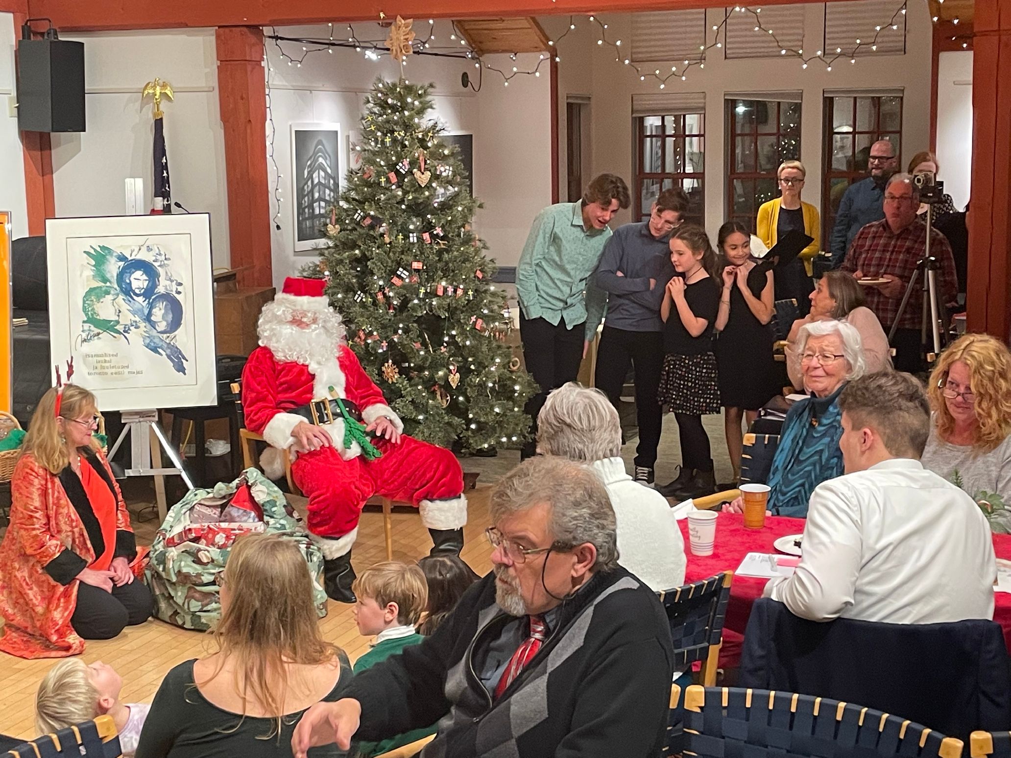 Kuigi maad ei katnud  lumevaip, leidsid jõuluvana ja umbes kaheksakümmend inimest ikkagi tee  Bostoni Eesti Seltsi tradit- sioonilisele jõulupeole 17.  detsembril Scandinavian Cultural Center’is.