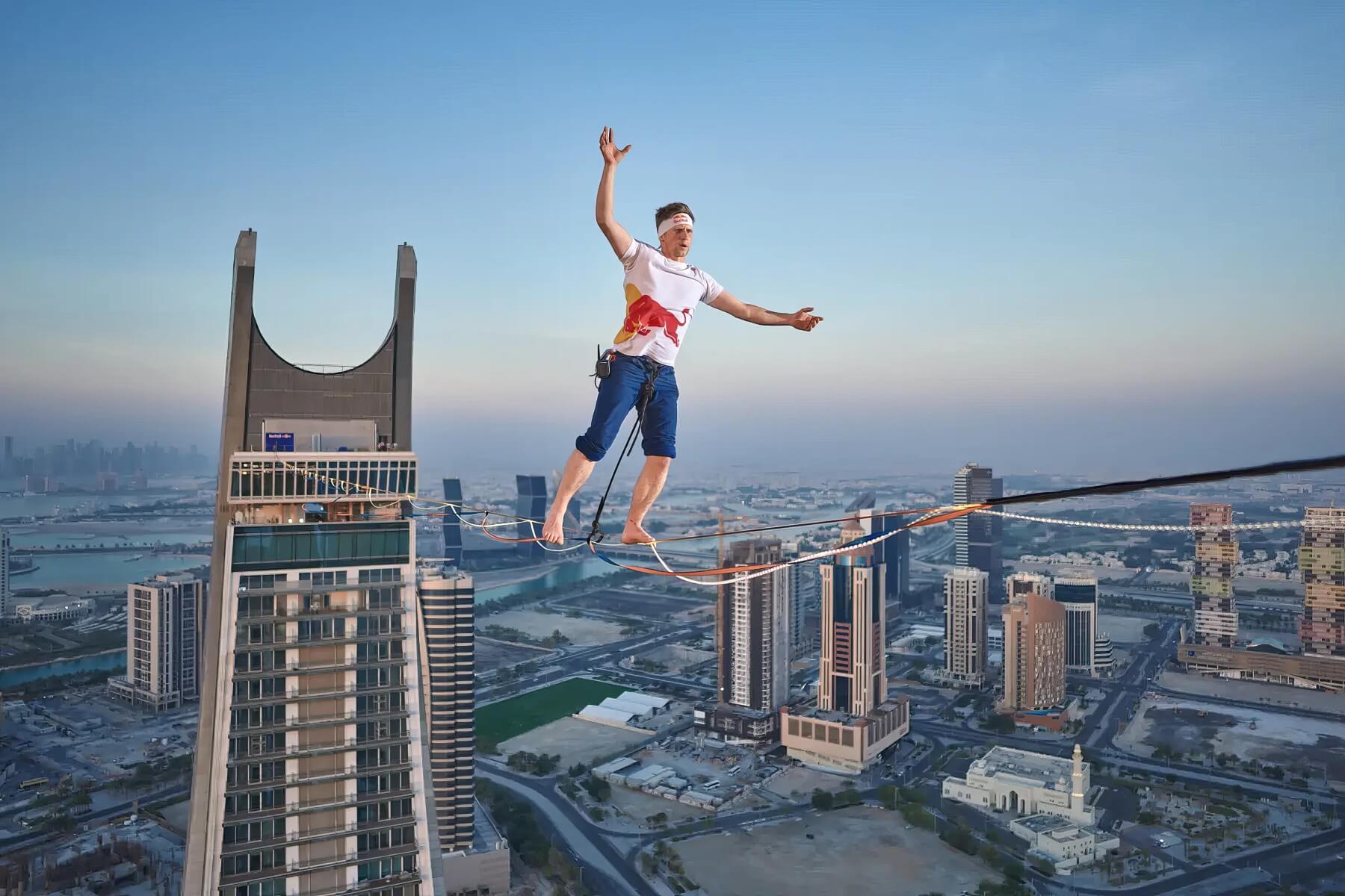 Red Bulli sportlane Jaan Roose võttis Kataris ette maailma pikima LED-valgustusega tasakaaluliini, mille läbis esimesel katsel.
