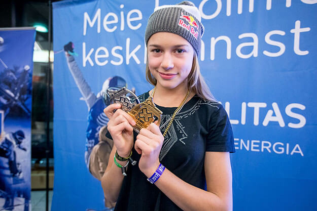 14-aastane Eesti vigursuustaja Kelly Sildaru tegi X-Mängudel Aspenis, CO, ajalugu, kui võitis pargisõidus kuldmedali ja tõusis võistluste noorimaks kahekordseks kullavõitjaks.
