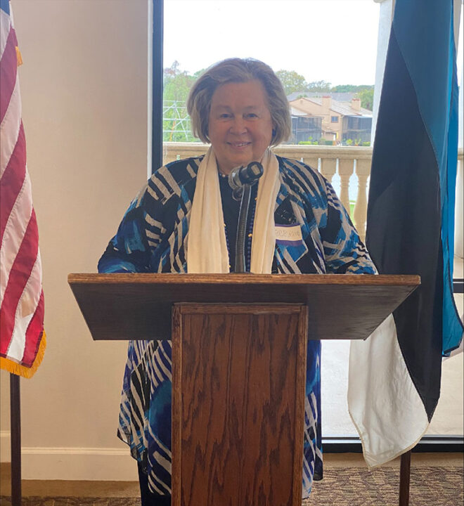 Aktuse avas meie aukonsul Kaie Põhi Latterner, kes tervitas kõiki taas kahes keeles. Palve luges seltsi pikaaegne aktiivne liige Monika Ormaa Sarasotast.
