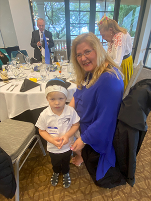 Läksime aktusele seekord kolmekesi, mina, mu ameeriklasest abikaasa Jack Walters, kes oskab eesti keelt B1 tasemel, ja tema 8-aastane tütrepoeg Kingston, kes ei oska eesti keelt rohkem kui üks kindel sõna – tubli! Olime varem lapselapsega kokku leppinud, et pika aktuse ajal ta ei tohi mängida oma telefoniga, aga kui laulud ja kõned on läbi, pärast siis võib. Aga juhtus täiesti uskumatu lugu, väikemees kuulas ja jälgis kogu neljatunnise ürituse ajal hoolega kõike seda, mis toimus poolenisti talle arusaamatus keeles, püüdis isegi kaasa laulda laululehe pealt Eesti hümni ja Eesti lipulaulu. Ehkki ülielava loomuga spordipoiss nagu ta on, püsis Kingston visalt paigal oma toolil ja elas kogu hingest kaasa, ei jooksnud laudade vahel ringi nagu mitmed teised pisemad lapsed seal tegid. Aga seegi oli omamoodi tore. Ühel pisipoisil, Heiki ja Heidi Pajusalu pojal Nathanil, oli vahva sinimustvalge müts peas. Ka paljud teised peokülalised kandsid sinimustvalged või sinivalgeid peorõivaid, mehed olid reeglina ülikondades ja mõni mees kandis isegi lipsu, mida tänapäeval näeb USAs väga harva kui üldse mitte, eriti meil, soojas subtroopilises Floridas.