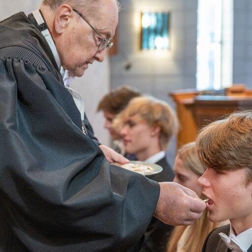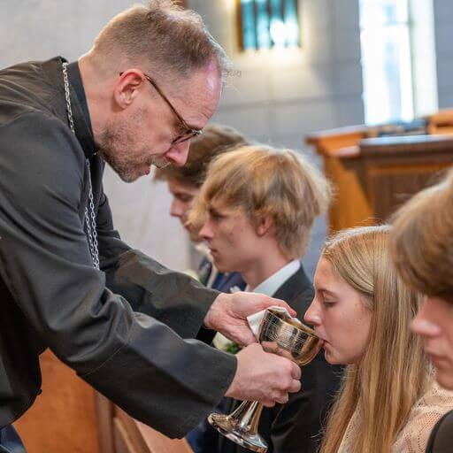 Piiskop Thomas Vagaga teenisid kaasa õpetaja Markus Vaga ja organist Maria Star Zumpano. Altaril liturgia ja armulaua jagamisega teenisid mõlemad vaimulikud. Õpetaja Markus viis armulaua leiva ja veini pinkidesse mõnele koguduseliikmele, kes on jõudnud kõrgesse ikka ja kellele liikumine valmistab raskusi.
