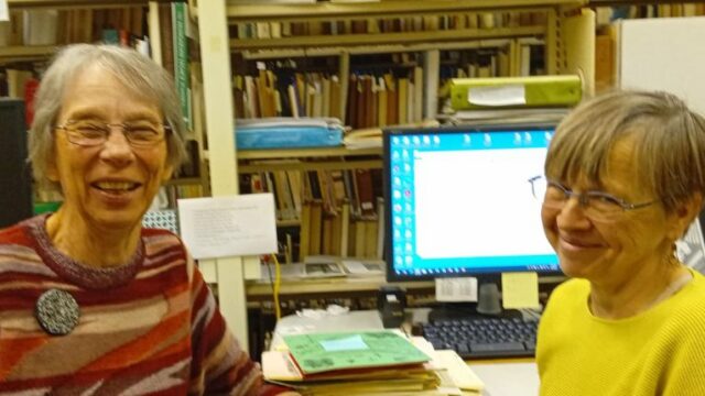 Margit Laanemets ja Kristel Tammik Eesti Rahvusarhiivist aitasid 2010. aastal arhiivikogusid Minnesotas süstematiseerida.