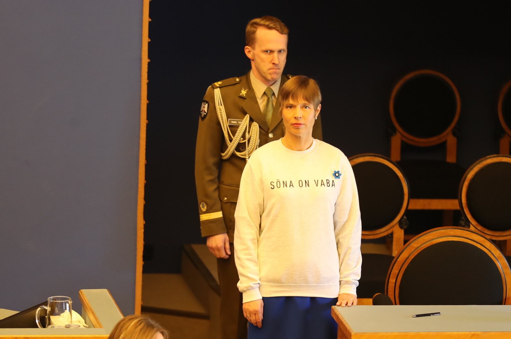 Valitsuse ametissekinnitamisel lahkus president Kersti Kaljulaid demonstratiivselt saalist, kui järg jõudis Marti Kuusikuni. Ka kandis president riiete peal dressipluusi kirjaga “Sõna on vaba”.