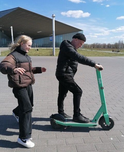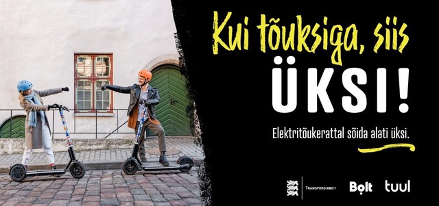 Hakkan hommikul hiljaks jääma. Tahan jõuda kiiremini trammi peale, kui mu jalad kanda suudavad. “Emme, võta Bolt!” ütleb mu peatselt 13-aastaseks saav tütar. Ta oleks võinud sama hästi öelda: “Emme, võta Tuul!” Just nende kahe kodu/maise firma elektri/tõuke/rattaid (electric kick scooters) saab suuremates Eesti linnades kergesti laenutada. Temale on see 1-2-3, mulle veel natuke võõras, et nii kiiresti sellele mõttele reageerida. Aga kui sul on nuti/telefonis mobiil/rakendus ehk ÄPP (mobile app(lication)) kohe võtta ja ASI KÄPAS nii- öelda ehk oled harjunud, siis silma/pilkselt (in the blink of an eye) oledki trammi/peatuses. Pead muidugi vaatama, et jätad sõiduki lubatud kohta. Kõike seda annab rakendus sulle teada. Teed lõpetuseks oma tõuksist foto ja arve tuleb sinu (või siis ema või isa) mobiil/telefoniarvele.