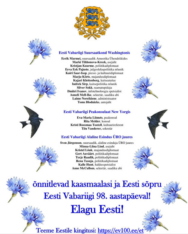 Õnnitleme Eesti Vabariigi 98. aastapäeva puhul!