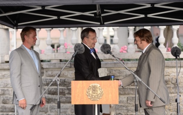 Tänukivi võtavad presidendilt vastu Jaan Tätte ja Raivo E. Tamm