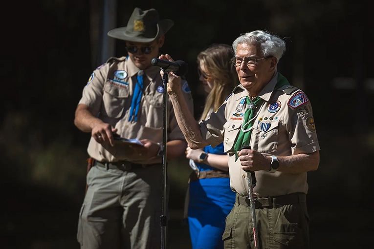 Komandantide gj Maili McClafferty ja sj Henry Ashfordi juhtimisel marssisid gaidid ja skaudid, hellakesed ja hundud, veteranid ja lasteaed peaväljakule laagri avatseremooniaks. Palvuseks sai sõna skm vikaar Ivan Kavoleff, kes rõhutas, et iga elusolend me ümber on looja kätetöö ning eeloleval nädalal elame me koos nii taimede kui loomadega.