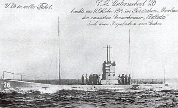 U-26, mis lasti vette 1913. aastal, oli Esimese maailmasõja alguses Saksa sõjajõudude uhkus, uputades Läänemerel vähemalt viis suuremat laeva, enne kui ise koos meeskonnaga märja haua leidis. Allveelaeva kapteniks oli 33-aastane Egewolf von Berckheim.