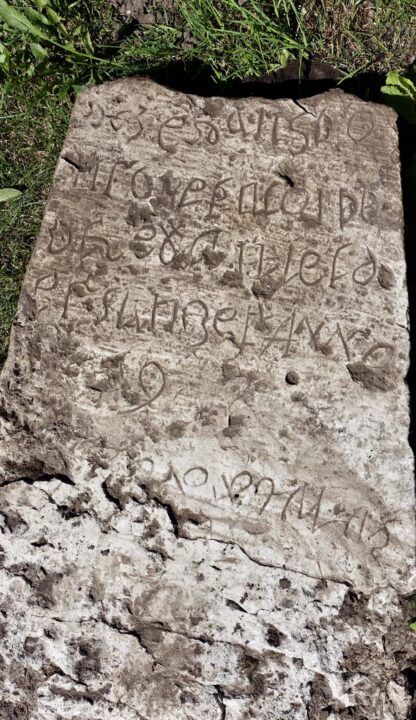 “Koguduse maadelt leidsime säense kivi, tegemist on arvatavasti hauakivi osaga. Kivil on peal tähed ja tekst, aga siiani pole suutnud asjatundjad öelda, mis alfabeediga on tegemist ja mis keeles on tekst. Välja on käidud oletusi, aga ei midagi kindlat.