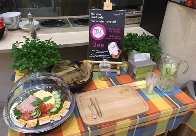 Öisel ajal saab Tallinna Lennujaamas kehakinnitust ka siis, kui söögikohad on kinni. Võileib tuleb ise valmis meisterdada ja raha võileiva eest jätta purgi sisse. Südametunnistuse järgi. Lauake asub 2. ja 4. värava vahel. Uuendust märkas ja jagas Facebookis fotoga Vivian Unt, kes kirjutas 28. jaanuaril Tallinna Lennujaama lehele: “Tallinna lennujaam – minu komplimendid! Ma olin südaöösel maandudes sellisest kaetud lauast tohutult suures vaimustuses! Ongi koduseim lennujaam!” Tallinna Lennujaam, mis reklaamib end Koduseim Lennujaam / The Cosiest Airport sai hiljuti sellise tiitli ka ühelt elustiiliblogilt The Fidgety Foodie http://thefidgetyfoodie.com Foto: Vivian Unt/Facebook
