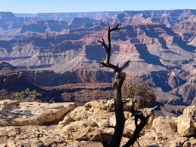 Kui Grand Canyonisse jõudsime, oli põnev tunne esimesel vaatepunktil, et oleme selle suure maailmaime ääres. Me veetsime rohkem aega “East Rim’il” ja “South Rimil” . South Rim ja North Rim on kõige suuremad ja kuulsamad vaateplatvormid. Seal seistes tulevad silmade ette lõpmatud trepitaolised mäenõlvakud, mitmekihilised mitmevärvilised vöötaolised mustrid nii kaugele kui silm ulatab näha. Ei oskagi seda vaadet küllaldaselt kirjeldada. Huvitavate vormidega kivimid, üks lõpmatu võimas kivik silmade ees! Meie allapoole ei länud, mõned meist ronisid küll kaugemale äärest, kuhu mina jäin ainult vaatama.