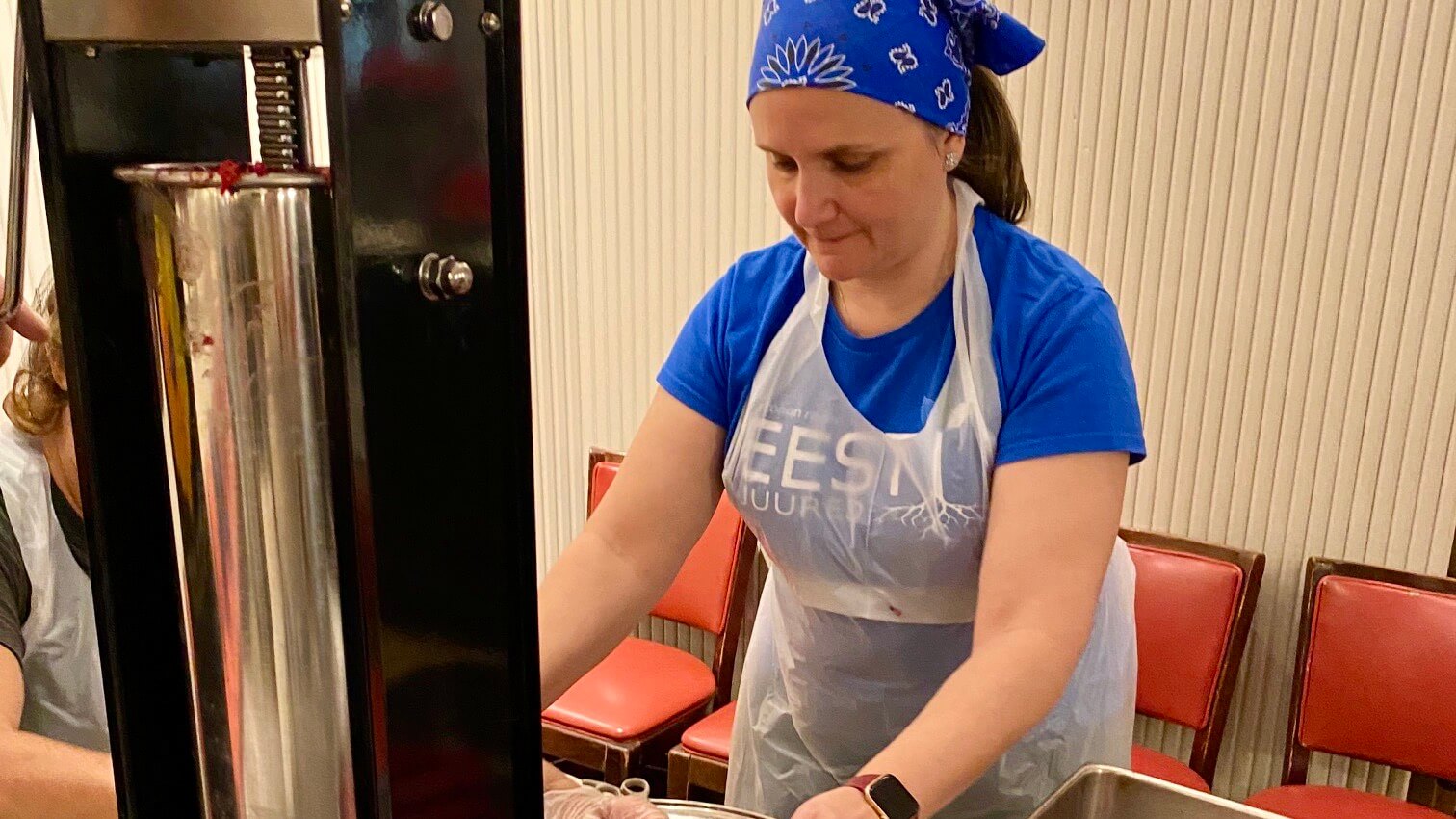 “Tööle!” Liisi claps. In the early afternoon of Saturday, November 19, the New York Estonian House held its annual November Blood Sausage Workshop. Organized by Liisi Vanaselja Fletcher and Argo Paomere, the workshop attracted about twenty participants, with annual workshop regulars and a few fresh faces coming in from across the New York and New Jersey region.