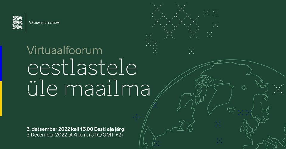 - First of all, the fourth Virtual Forum for Estonians abroad will take place live on December 3rd, Saturday, at 4-6 p.m. (Estonian time) with translation into English. You are very welcome to follow and participate actively.