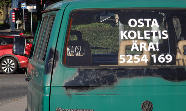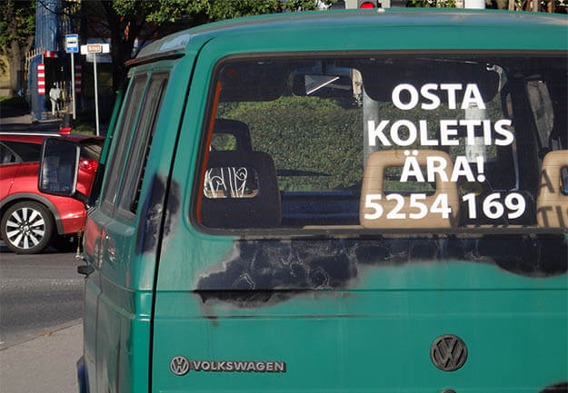 Why not tell it like it is? People in Põhja-Tallinn are being urged to buy this beast. Ostma = to buy, osta (imperative) buy! Osta ära = buy it “away” / take it away with you. Koletis comes from the word kole (ugly). Beauty and the Beast is Kaunitar ja koletis. But ühe kuld, teise muld or “one person’s gold is another person’s dirt” and beauty is in the eye of the beholder (ilu on vaataja silmades); thank goodness for that. Such honesty (ausus) is refreshing and charming. Made us look. Photo and text: Riina Kindlam, Tallinn