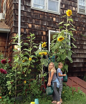 Margaret (vasakul) ja Johanna teavad, kuidas kasvatada kõrget päevalille. Foto: Eda Kaasik