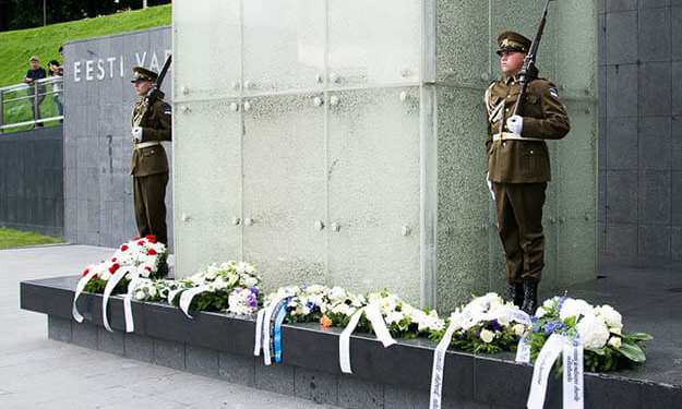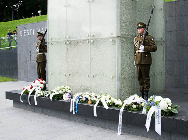 Estonian Minister of Social Protection Margus Tsahkna represented the Estonian government and MEP Tunne Kelam the European Parliament at the ceremony, which began at 12 noon on Tuesday.